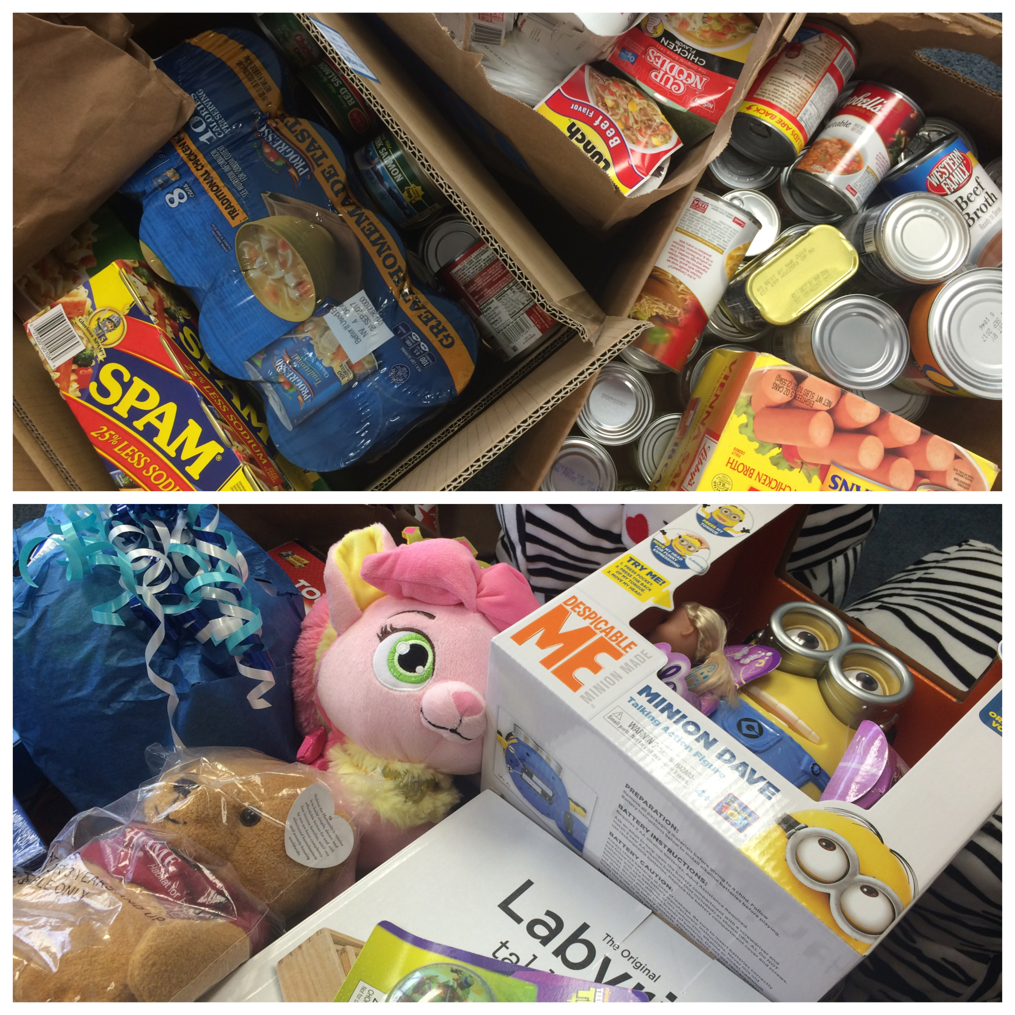 Donations of canned goods and toys from Kinetic Productions to benefit local community